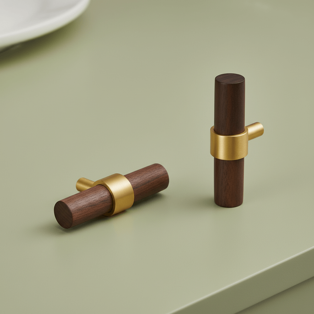 Denne T-barre i valnød udstråler varme og tilføjer en naturlig fornemmelse til dit hjem. Med sit tidløse design og monteringer i solid messing giver den dit køkken eller dine møbler et elegant og eksklusivt udtryk. Vi tilbyder også matchende greb i samme serie. Se CH025W under Greb i menuen.