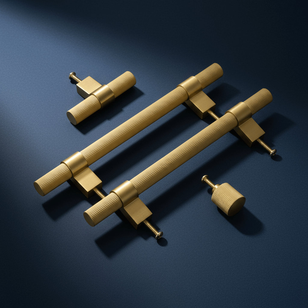 Messinghåndtak for kjøkkendører eller møbler, produsert i solid messing med riflet, industriell utførelse. Et stilrent håndtak som er linjert langs hele lengden, med firkantet innfestingsplate i børstet utførelse. Passer utmerket i moderne kjøkken der rene linjer og stram design går hånd i hånd. Håndtaket er produsert i solid messing og deretter behandlet med en coating for å oppnå en fullendt finish og en beskyttende overflate. Kombiner gjerne med knotter eller T-bars i serie 3138 for et komplett og helhetlig uttrykk.