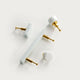 Karakteristiskt handtag i vitt organiskt glas med gradade kanter. En stilfull serie som verkligen kan karakterisera en möbel eller ett rum. Infästningen i solid borstad mässing harmoniserar på ett snyggt kontrasterande sätt med det vita handtaget. Passar såväl på möbler som i badrummet eller köket. Kombinera gärna med knoppar eller T-bars som finns tillgängliga i samma serie och nås genom relaterade produkpresentationerna nedan.